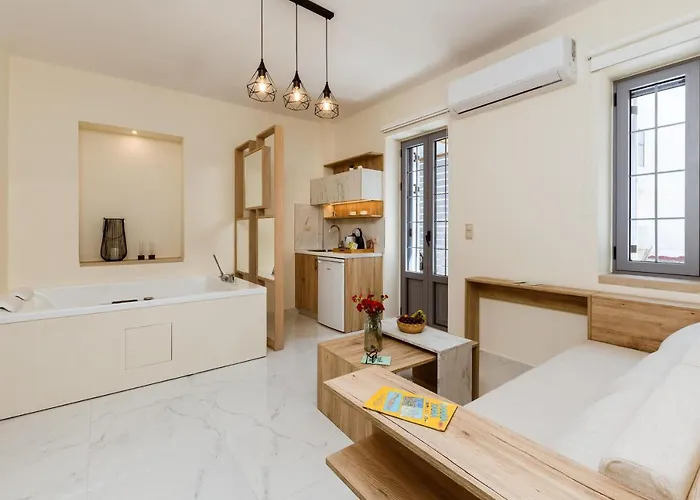 Emeli Suites ferielejlighed i Chania byder på en tennisbane, Jacuzzi og en gårdhave. Denne indkvartering ligger 10 minutters gang fra centrum af Chania og ca. 800 meter fra Etz Hayyim Synagoge.